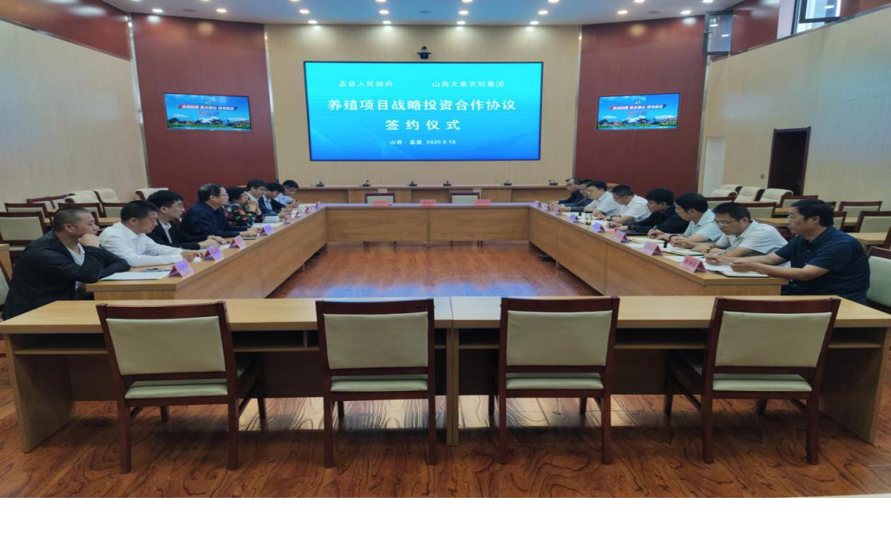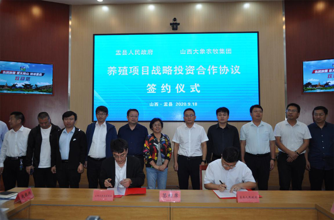 9月18日,山西乐鱼电竞·(中国)官方网站农牧股份有限公司与盂县县政府举行战略合作协议签订仪式。盂县县长梁海昌,县委常委、副县长连斌,副县长郭华,山西乐鱼电竞·(中国)官方网站农牧股份有限公司投资建设部总经理梁红斌、山西新大象中区事业部总经理翟润生参加签约仪式。