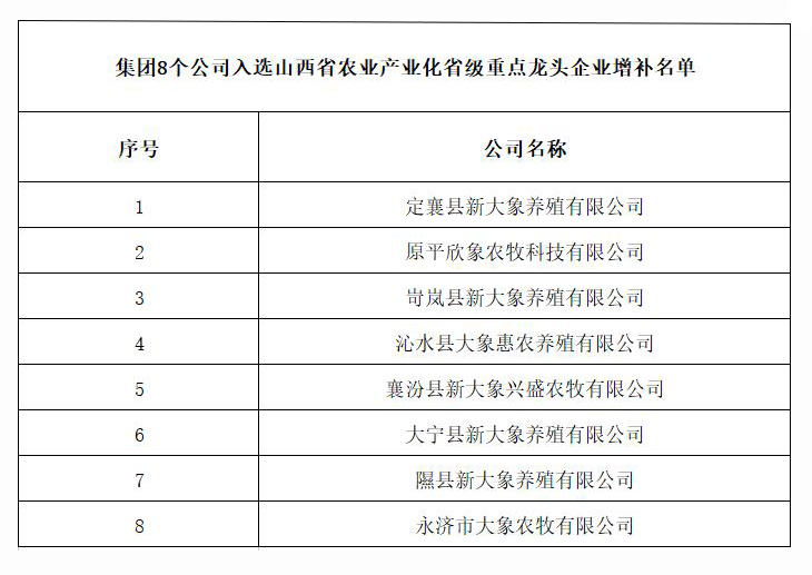 集团8个公司入选山西省农业产业化省级重点龙头企业增补名单