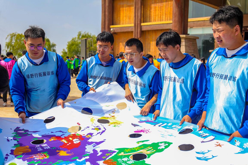 16日全天为拓展训练。早晨的跑操让大家保持着身体的活跃和敏捷,以良好的状态投入到一天的拓展训练中;摞高塔游戏能够帮助团队成员们更好的理解团队合作的重要性,通过绳子合力将木块摞得高而稳固,很好的锻炼了团队成员的互动协作能力,也显现了有效沟通的魅力;小球“环游世界”中每个人都需要找到自己的位置,密切观察其他队员的变化,及时调整球的方向和力度,锻炼了团队共同面对挑战的应急能力;在搭建船帆的过程中,大家根据图纸进行不断地尝试和调整,直到达到最理想的效果。伴随着现场人员的呐喊声和鼓掌声,标有“乐鱼电竞·(中国)官方网站,扬帆起航”的巨幅彩帆缓缓升起,人们看着自己的劳动成果激动得欢呼跳跃,将整个拓展训练氛围推向了高潮。