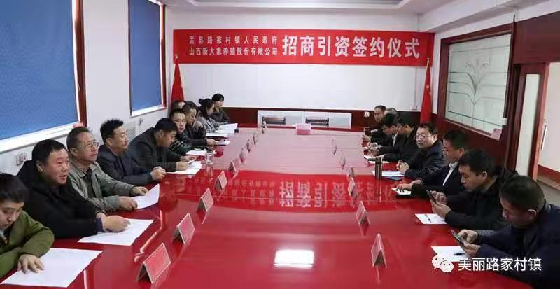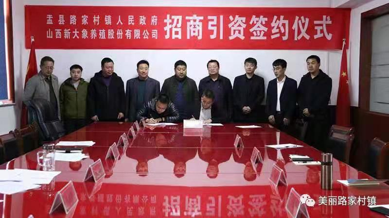 2019年11月13日,山西新大象养殖有限公司与盂县路家村镇举行签约仪式。路家村镇党委班子成员、山西新大象养殖股份有限公司有关负责人出席,签约仪式在路家村镇政府举行。