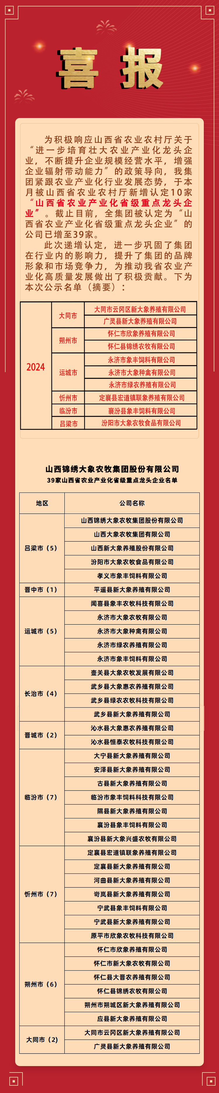 热烈庆祝我集团新增10家“山西省农业产业化省级重点龙头企业”