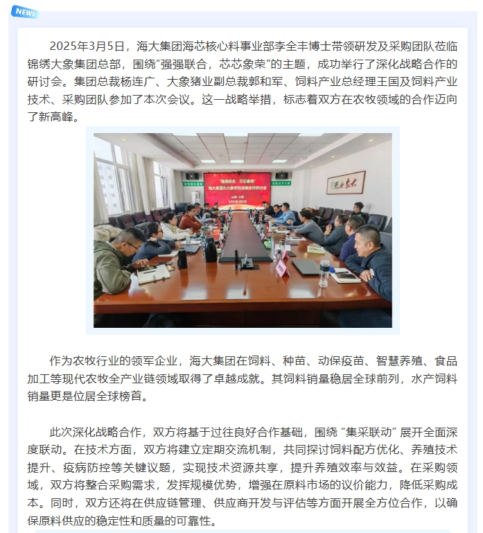 “强强联合,芯芯象荣”——乐鱼电竞·(中国)官方网站与海大集团深化战略合作研讨会在集团总部成功召开