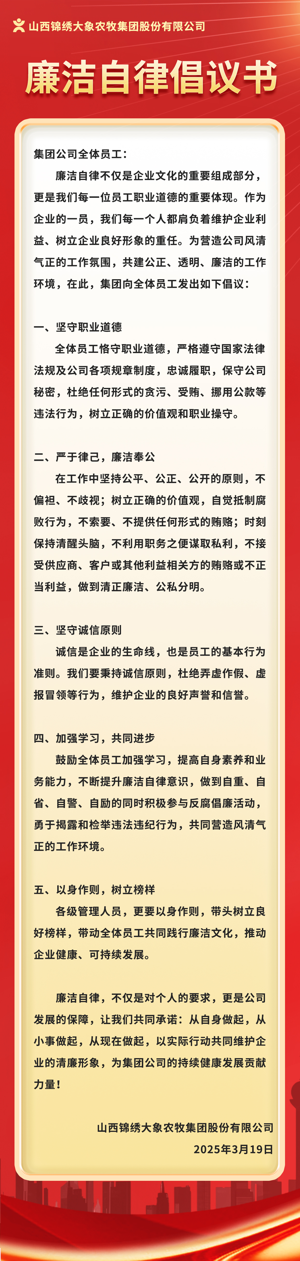 廉洁自律倡议书